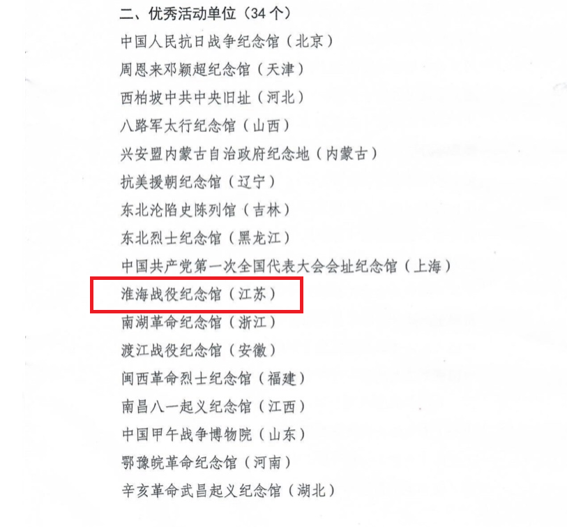 淮海戰(zhàn)役紀(jì)念館是江蘇省唯一入選的優(yōu)秀活動(dòng)單位。