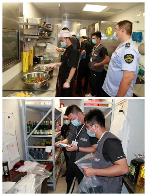 此次檢查隨機(jī)抽選了一家學(xué)校食堂、一家養(yǎng)老機(jī)構(gòu)食堂和一家大型餐飲企業(yè)。執(zhí)法人員根據(jù)《食品安全法》、《食品安全法實(shí)施條例》要求,對照《餐飲服務(wù)食品安全操作規(guī)范》,對餐飲單位的許可管理、從業(yè)人員管理、場所衛(wèi)生、設(shè)施設(shè)備、原料采購與貯存、食品添加劑管理、加工過程控制、專間管理、餐飲具清洗消毒、食品留樣等方面進(jìn)行全面檢查,并對食品原材料、成品進(jìn)行了監(jiān)督抽檢。