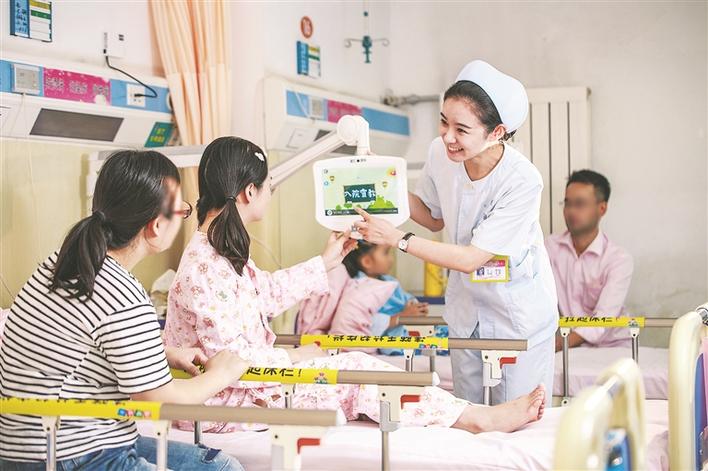 普外二科燒傷科責(zé)任護(hù)士在病房床邊對(duì)患兒進(jìn)行入院宣傳教育