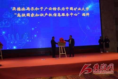 啟動儀式上,徐東海、周國慶、吳德法、虞濤共同啟動平臺;徐東海、周國慶為中國礦業(yè)大學(xué)“國家知識產(chǎn)權(quán)示范高校”揭牌;吳德法、于廣云為中國礦業(yè)大學(xué)“高校國家知識產(chǎn)權(quán)信息服務(wù)中心”揭牌。