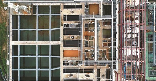 鎮(zhèn)江華科電鍍園區(qū)廢水集中處理二期“綠島”試點項目—廢水處理物化系統(tǒng)空中全景(受訪者供圖)