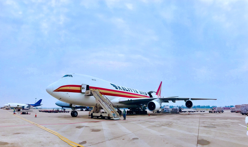 2020年6月9日,CGL開(kāi)通鄭州-洛杉磯(CGO-ANC-LAX)美線往返包機(jī)航線 。劉柯真 攝