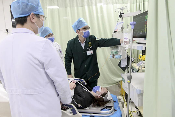 演練共設(shè)置了兩場急救轉(zhuǎn)運模擬場景。場景一是2小時內(nèi)從徐州轉(zhuǎn)運一位因高速公路重大交通事故生命垂危的傷員至上海市某醫(yī)院救治,該傷員合并嚴重主動脈夾層,隨時有動脈破裂風險;場景二是一位在銅山柳新境內(nèi)客貨車追尾事件中的重傷員通過直升機被轉(zhuǎn)運至徐州市第一人民醫(yī)院急救,轉(zhuǎn)運用時約10分鐘。