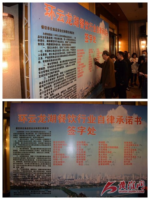 市市場監(jiān)管局副局長賀中華主持會議并對落實好會議精神和做好“五一”期間的餐飲監(jiān)管工作提出具體要求。市人大財經(jīng)委二級調(diào)研員李彥見證食品安全共建共享行動,泉山區(qū)副區(qū)長季華致辭,市市場監(jiān)管局食品安全總監(jiān)周法庭做工作部署,餐飲企業(yè)代表、市場監(jiān)管基層分局代表作交流發(fā)言,開元名都大酒店負(fù)責(zé)人宣讀倡議書,環(huán)云龍湖40家餐飲企業(yè)代表簽訂食品安全行業(yè)自律承諾書。