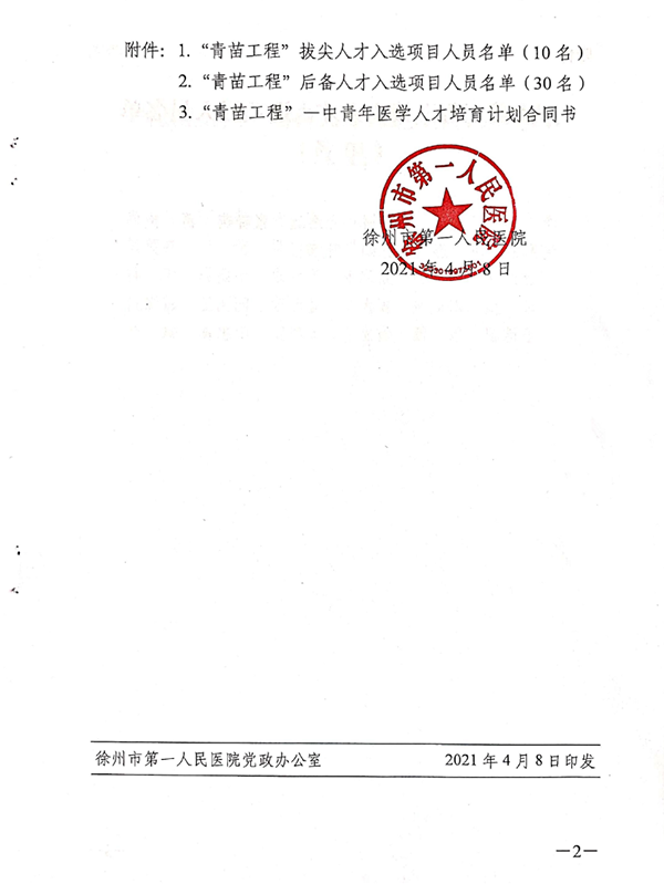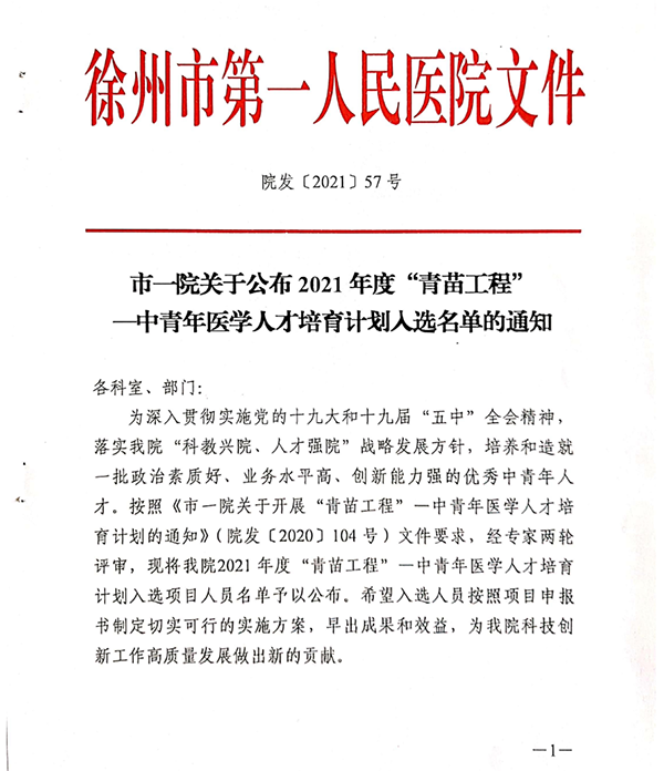 2021年度“青苗工程”中青年醫(yī)學(xué)人才培養(yǎng)計(jì)劃中,共有40名同志入選,其中,“青苗工程”拔尖人才10名、“青苗工程”后備人才30名。