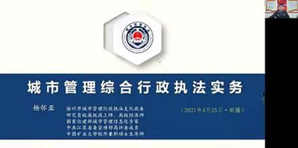 徐州市城管執(zhí)法支隊(duì)政委楊懷亞應(yīng)邀通過視頻形式,作了《城市管理綜合行政執(zhí)法實(shí)務(wù)》專題講座,分別從城市管理執(zhí)法定位、范圍、規(guī)范、存在問題及對(duì)策作出詳細(xì)講解,以案釋法,圍繞行政執(zhí)法主體、人員、相對(duì)人、程序等做出細(xì)致分析,對(duì)新疆自治區(qū)的城市管理執(zhí)法工作具有一定的指導(dǎo)意義,與會(huì)各地城市管理執(zhí)法干部充分認(rèn)識(shí)到規(guī)范化執(zhí)法建設(shè)、提升執(zhí)法水平的重要意義。