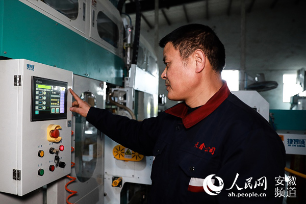 正在操作自動(dòng)化設(shè)備的天鑫糧油工作人員。人民網(wǎng) 陶濤攝