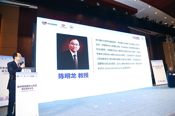 中國房顫中心聯(lián)盟副主席、江蘇省房顫聯(lián)盟主席、徐州醫(yī)科大學(xué)附屬醫(yī)院院長陳明龍教授出席會議,為28家聯(lián)盟單位及聯(lián)盟主席、副主席、秘書長和培訓(xùn)組組長、質(zhì)控組組長等個人授牌,并做了《房顫中心建設(shè)意義與發(fā)展》的專題講座,指出徐州地處蘇、魯、豫、皖四省接壤地區(qū),既是江蘇省三大都市圈的核心城市,也是淮海經(jīng)濟區(qū)中心城市,但淮海經(jīng)濟區(qū)的醫(yī)療衛(wèi)生基礎(chǔ)薄弱,各醫(yī)療機構(gòu)的救治管理能力也參差不齊,缺少規(guī)范的診療中心,徐州市房顫中心聯(lián)盟的建立對淮海經(jīng)濟區(qū)房顫疾病的預(yù)防和救治能力具有重要意義。