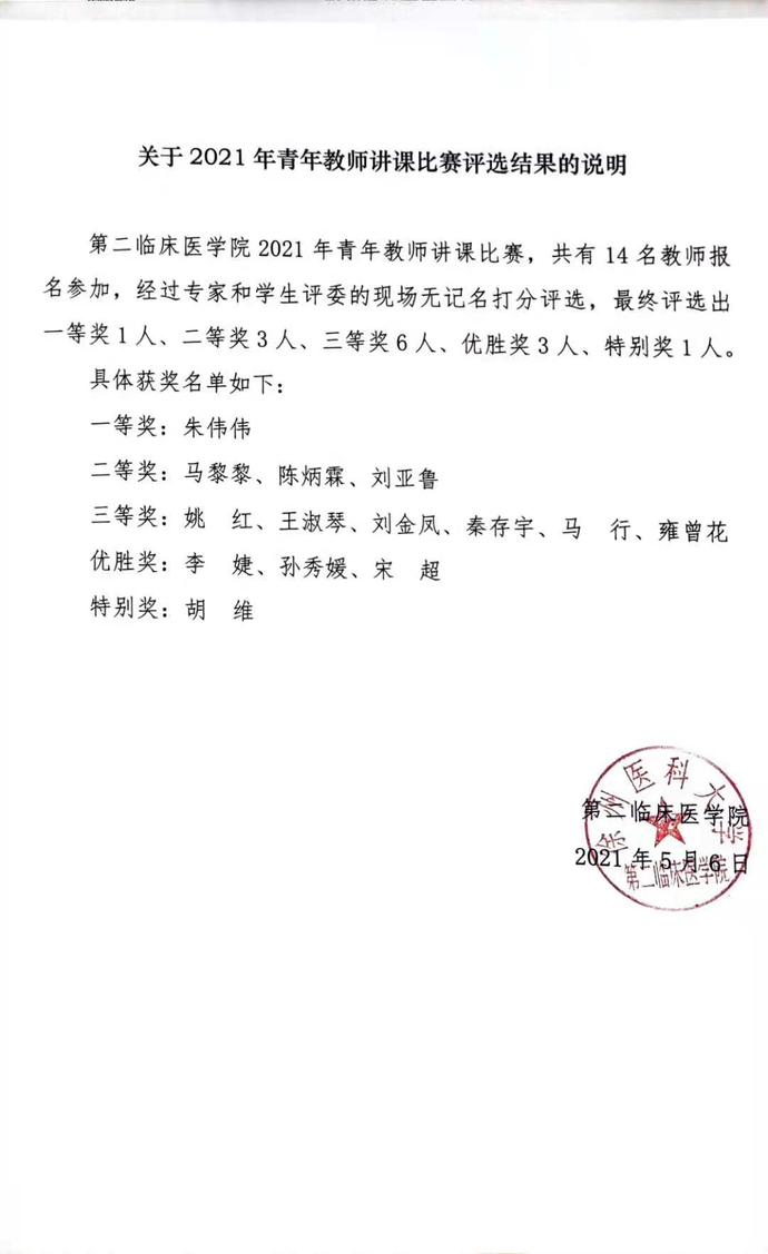 徐州市兒童醫(yī)院教師在徐州醫(yī)科大學第二臨床醫(yī)學院青年教師講課比賽中獲獎