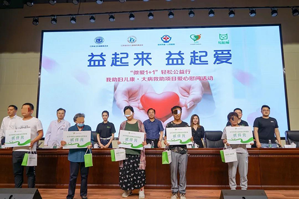 黃淮網(wǎng)(杜佳羲 韓黎雯)  5月24日下午,徐州市第一人民醫(yī)院醫(yī)患迎來“益起來,益起愛‘微愛1+1’輕松公益行——我助婦兒康•大病救助項目”愛心慰問活動。該活動由江蘇省衛(wèi)生健康委員會、江蘇省婦女兒童福利基金會、輕松籌集團、北京微愛公益基金會聯(lián)合徐州市一院開展。