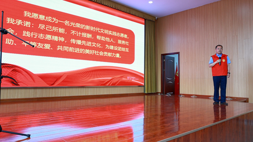 賈汪區(qū)市場(chǎng)監(jiān)管局局長(zhǎng)張景玉做表態(tài)發(fā)言并帶領(lǐng)全體隊(duì)員宣誓。