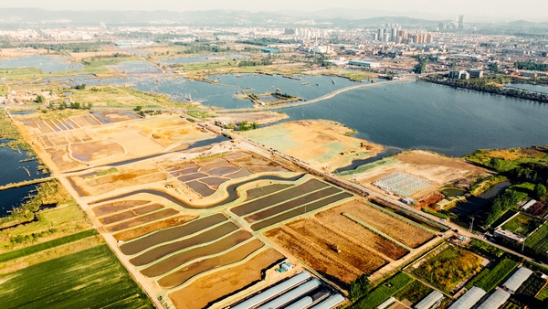在杜集區(qū)礦山集街道開渠東路以北、龍昌路兩側的百蓮百荷項目基地,大小不一的湖、塘已具雛形,形成獨特的水、田交錯的場景。用不了多久,“接天蓮葉無窮碧,映日荷花別樣紅”的美麗景色便能映入眼簾。