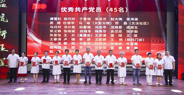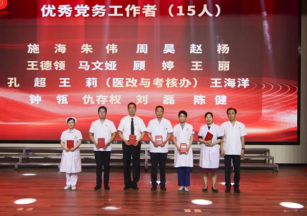 在過去的一年里,徐州市一院每一名共產(chǎn)黨員都立足本職工作,全心全意為人民服務(wù),充分發(fā)揮著先鋒模范帶頭作用。為此,該院黨委對(duì)優(yōu)秀黨員、優(yōu)秀黨務(wù)工作者、先進(jìn)基層黨組織進(jìn)行表彰。院黨委副書記、紀(jì)委書記畢榮為6個(gè)先進(jìn)基層黨組織頒獎(jiǎng),副院長(zhǎng)甄宗禮為15名優(yōu)秀黨務(wù)工作者代表頒獎(jiǎng),副院長(zhǎng)趙亮、金風(fēng)為45名優(yōu)秀共產(chǎn)黨員代表頒獎(jiǎng)。