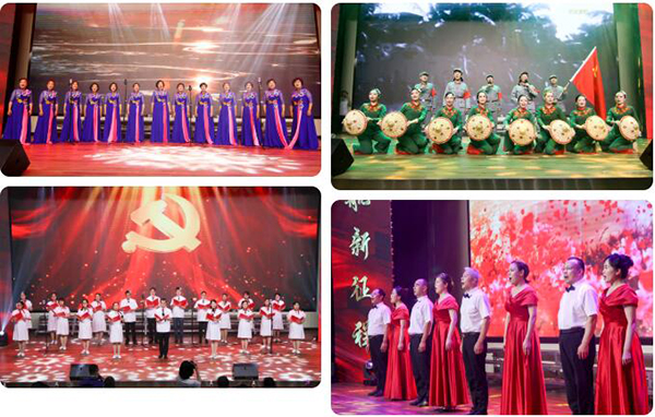內(nèi)科黨總支的合唱《在燦爛陽光下》掀起了紅色歌曲匯演的序幕。眼防所黨總支帶來《唱支山歌給黨聽》《歌唱祖國(guó)》,門診黨總支帶來《繡紅旗》《萬泉河水清又清》,外科黨總支帶來《我的祖國(guó)》,以及銅山分院帶來《我和我的祖國(guó)》,機(jī)關(guān)黨總支帶來《燈火里的中國(guó)》《乘風(fēng)破浪》,精彩的歌曲輪番上演,大家都把最深情的歌,最誠(chéng)摯的祝福,獻(xiàn)給我們偉大的黨。最后,紅歌匯演在離退休黨總支帶來的《團(tuán)結(jié)就是力量》《沒有共產(chǎn)黨就沒有新中國(guó)》大合唱中完美落幕。