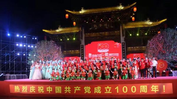 黃海網(wǎng)(宋 梅)  6月29日晚,為慶祝中國(guó)共產(chǎn)黨成立100 周年,淮北市濉溪縣社會(huì)組織在濉溪乾隆湖公園水街舉辦文藝匯演。