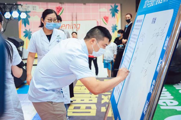 ▲醫(yī)療機(jī)構(gòu)、企業(yè)代表現(xiàn)場(chǎng)簽名承諾