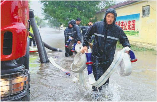 7月29日,德州消防支隊(duì)防汛搶險(xiǎn)攻堅(jiān)隊(duì)對積水嚴(yán)重的城市路段進(jìn)行集中排澇。
