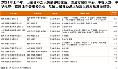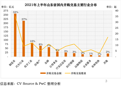 普華永道中國山東主管合伙人張國俊表示:“從行業(yè)分布看,山東省的并購交易主要集中在高端制造、汽車、化工、金融等領(lǐng)域,其中制造業(yè)和汽車行業(yè)2021年上半年已披露交易金額超470億元,約占全省的59%,從側(cè)面反映了山東省產(chǎn)業(yè)正朝著高端高質(zhì)高新方向發(fā)展。”(白曉)