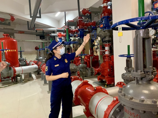 為何這樣嚴肅?原來,根據(jù)國家標準,他所值班的中國重汽科技大廈高173.3米,屬一類高層公共建筑(超高層建筑),消防安全責任重于泰山,何繼崧和他的值班同事不光要熟悉應急處置流程,以便對主機發(fā)出的報警信息確認并記錄,每日還要展開對消防水泵房、可燃氣體閥門、消防水箱間等消防重點部位的巡視。