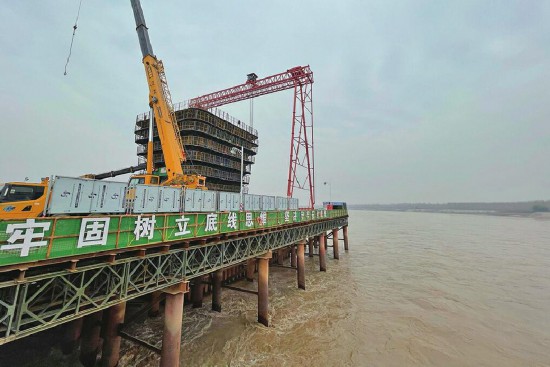 大西環(huán)特大橋正在加速“跨黃”建設(shè) 柴穎穎 攝
