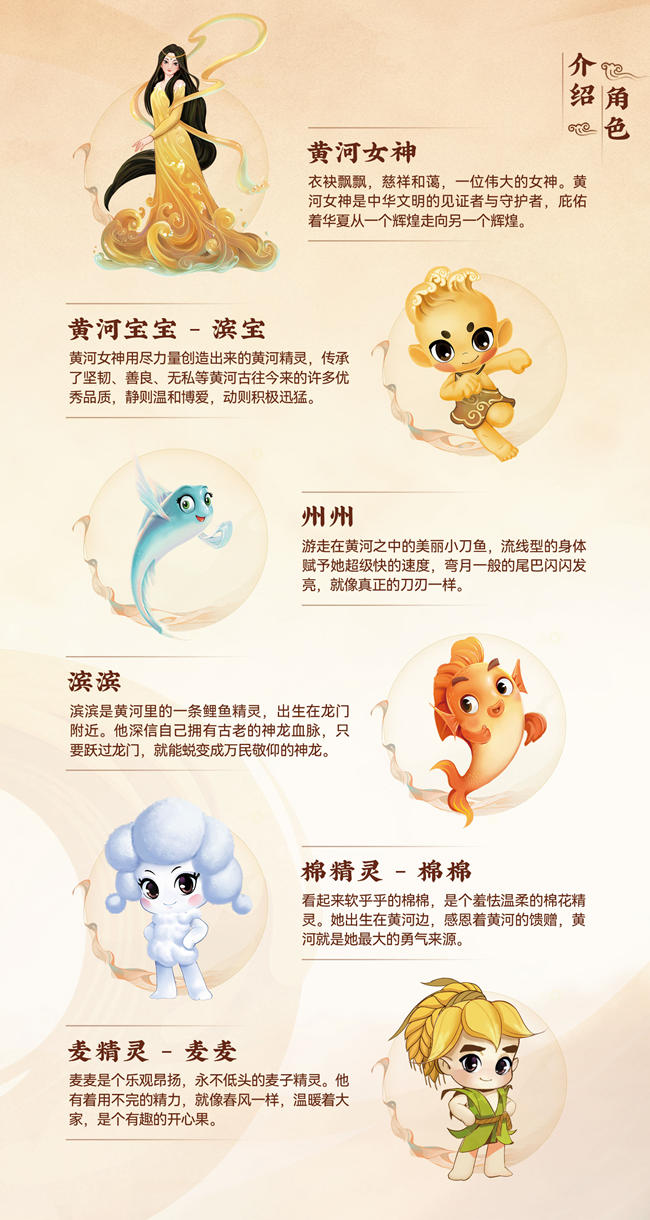 據(jù)悉,黃河超級(jí)IP《黃河守護(hù)者聯(lián)盟》是以“黃河寧、天下平”為理念設(shè)計(jì),融合黃河文明及中國傳統(tǒng)文化元素進(jìn)行IP動(dòng)畫制作。融合仰韶文化、大汶口文化、龍山文化等先民文化遺跡,大禹治水、鯉魚躍龍門、黃河河伯等神話傳說,黃河刀魚、濱州棉花、濱州小麥等特色產(chǎn)業(yè),囊括黃河流域最具代表性的自然生態(tài)、文化遺產(chǎn)和精神標(biāo)識(shí)!饵S河守護(hù)者聯(lián)盟》由黃河女神所孕育的黃河精靈黃河寶寶——濱寶,帶領(lǐng)他的小伙伴小鯉魚濱濱、小刀魚州州、棉精靈棉棉、麥精靈麥寶寶共同組建,是一組承載深厚文化底蘊(yùn)和洋溢時(shí)代精神的動(dòng)漫形象。在今年8月12日公布的第六屆“玉猴獎(jiǎng)”獲獎(jiǎng)名單中,《黃河守護(hù)者聯(lián)盟》榮獲“年度十大最具商業(yè)價(jià)值文旅吉祥物”獎(jiǎng)項(xiàng)。