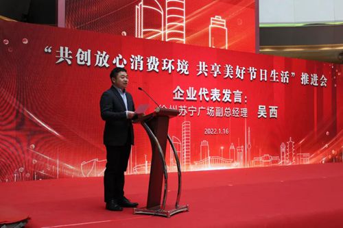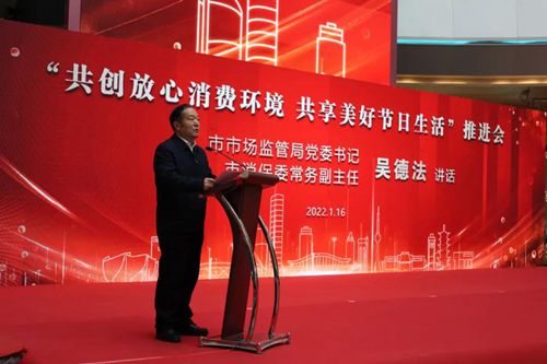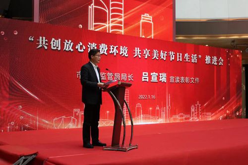 黃淮網(wǎng)(徐仕評 費堅真)  正值春節(jié)來臨之際,為進一步營造安全放心的節(jié)日消費環(huán)境,讓消費者更具獲得感、幸福感、安全感,1月16日上午,徐州市市場監(jiān)督管理局、徐州市消費者權(quán)益保護委員會在蘇寧廣場召開“共創(chuàng)放心消費環(huán)境 共享美好節(jié)日生活”推進會。市人大常委會副主任、市消保委主任束志明,市政府副市長吳衛(wèi)東,鼓樓區(qū)政府區(qū)長毛孝泉,市市場監(jiān)管局黨委書記、市消保委常務(wù)副主任吳德法,市市場監(jiān)管局局長呂宣瑞,鼓樓區(qū)政府副區(qū)長史長青;主城區(qū)各區(qū)市場監(jiān)管局局長、分管局長、消保和消協(xié)負(fù)責(zé)人,市市場監(jiān)管局相關(guān)處室負(fù)責(zé)人、有關(guān)企業(yè)等參加會議;會議由市市場監(jiān)管局副局長、市消保委副主任徐永星主持。