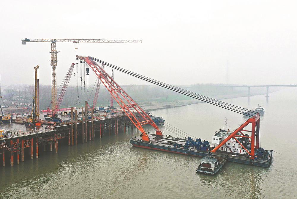 1月4日,在G3銅陵長(zhǎng)江公鐵大橋北岸施工現(xiàn)場(chǎng),中鐵大橋局四公司施工人員在進(jìn)行打樁作業(yè)。這是銅陵市貫徹落實(shí)長(zhǎng)江經(jīng)濟(jì)帶、長(zhǎng)三角一體化發(fā)展戰(zhàn)略和實(shí)現(xiàn)跨江發(fā)展的重要工程,也是銅陵建市以來(lái)投資規(guī)模最大的項(xiàng)目。 本報(bào)通訊員 過(guò)仕寧 攝