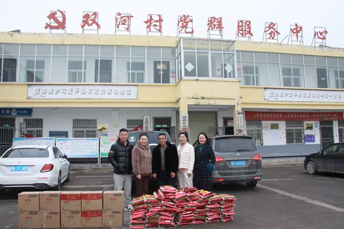 黃淮網(wǎng)(宋 梅)  1月27日,春節(jié)將至,淮北市鄉(xiāng)興農(nóng)業(yè)科技有限公司慰問(wèn)淮北市烈山區(qū)古饒鎮(zhèn)雙河村貧困家庭;幢笔泄硼堟(zhèn)雙河村書記趙斌熱情迎接并表示感謝。