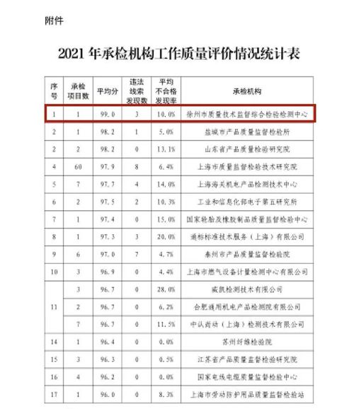 黃淮網(wǎng)(徐仕評 費(fèi)堅真)  近日,上海市市場監(jiān)督管理局下發(fā)了《關(guān)于通報2021年產(chǎn)品質(zhì)量監(jiān)督抽查承檢機(jī)構(gòu)工作質(zhì)量評價情況的函》,徐州市檢驗(yàn)檢測中心(原徐州市質(zhì)量技術(shù)監(jiān)督綜合檢驗(yàn)檢測中心,下同)以99.0的高分在36家接受考核的機(jī)構(gòu)中排名第一。