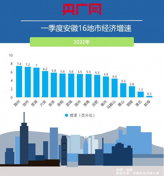 一圖速覽2022年一季度安徽16地市經(jīng)濟(jì)增速