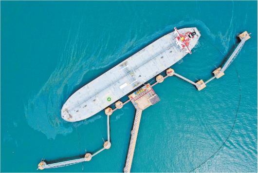 日前,巴哈馬籍“麗塔”油輪在山東港口青島港油港碼頭卸載進(jìn)口原油。(盧鵬 吳紹洋)