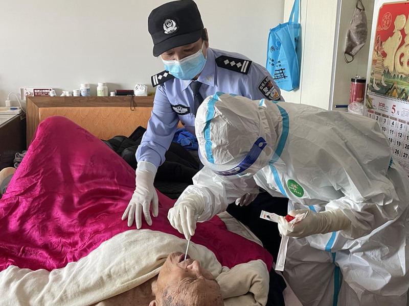 民警協(xié)助醫(yī)護人員為特殊人群上門服務(wù)。 河南省委政法委供圖