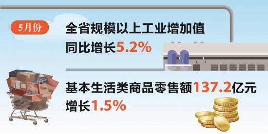 消費(fèi)市場(chǎng)逐步恢復(fù),基本生活類商品零售額由降轉(zhuǎn)增。5月份,基本生活類商品零售額137.2億元,由4月份下降1.5%轉(zhuǎn)為增長(zhǎng)1.5%。線上消費(fèi)增勢(shì)良好,5月份限額以上批發(fā)和零售業(yè)企業(yè)通過(guò)公共網(wǎng)絡(luò)實(shí)現(xiàn)商品零售額增長(zhǎng)13.7%,比4月份提高9.9個(gè)百分點(diǎn)。此外,進(jìn)出口增長(zhǎng)繼續(xù)加快,出口增長(zhǎng)快于進(jìn)口。據(jù)海關(guān)統(tǒng)計(jì),5月份,全省進(jìn)出口總額647.2億元,同比增長(zhǎng)13.8%。