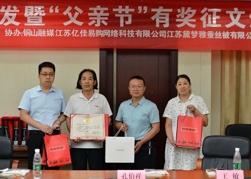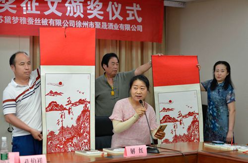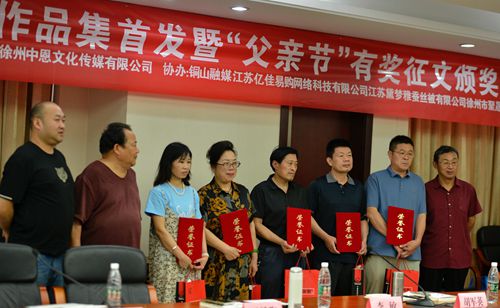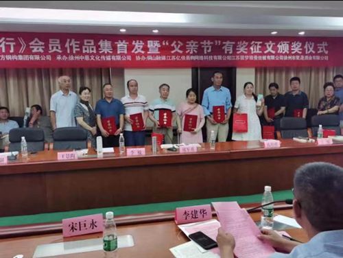黃淮網(wǎng)(文/馮艷春 攝影/李克華)  六月的徐州,花團(tuán)錦簇,火傘高張。6月19日,為弘揚(yáng)中華民族優(yōu)秀傳統(tǒng)美德,展現(xiàn)協(xié)會(huì)會(huì)員文學(xué)創(chuàng)作累累碩果,在父親節(jié)這個(gè)特殊的日子里,徐州市文化藝術(shù)交流協(xié)會(huì)、徐州市策劃營銷行業(yè)商會(huì)、徐州市春慈社會(huì)工作發(fā)展中心在銅山區(qū)政府會(huì)議中心隆重舉行"江蘇八方鋼構(gòu)杯”父親節(jié)有獎(jiǎng)?wù)魑念C獎(jiǎng)暨《五載·前行》會(huì)員文集首發(fā)儀式。