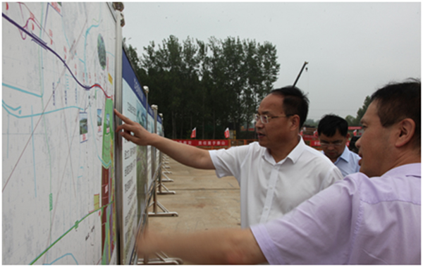 黃淮網(wǎng)(朱翠翠) 7月5日,徐州市交通運(yùn)輸局黨委書記、局長衛(wèi)道光一行調(diào)研東部繞越高速公路建設(shè)。