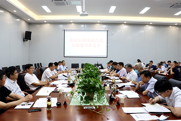 黃淮網(wǎng)(趙崢) 7月19日上午,徐州市高速公路建設(shè)領(lǐng)導(dǎo)小組辦公室組織召開徐州東部繞越高速公路工程建設(shè)推進(jìn)會。徐州市交通運輸局黨委書記、局長、東部繞越高速公路工程建設(shè)指揮部總指揮衛(wèi)道光,徐州市交通控股集團(tuán)有限公司黨委書記、董事長、東部繞越高速公路工程建設(shè)指揮部指揮賈泉涌,徐州市交通運輸局黨委委員、副局長、東部繞越高速公路工程建設(shè)指揮部常務(wù)副指揮薄立明,徐州市公路事業(yè)發(fā)展中心主任、東部繞越高速公路工程建設(shè)指揮部副指揮張保衛(wèi),徐州市交通控股集團(tuán)有限公司黨委委員、副總經(jīng)理、東部繞越高速公路工程建設(shè)指揮部副指揮李延國,徐州市交通局綜計處、建管處主要負(fù)責(zé)人,及賈汪、銅山、睢寧、邳州四縣區(qū)高速公路建設(shè)領(lǐng)導(dǎo)小組辦公室負(fù)責(zé)人,徐州市執(zhí)法支隊分管領(lǐng)導(dǎo),指揮部、項目辦、項目公司、施工、監(jiān)理、檢測單位相關(guān)負(fù)責(zé)人參加了本次會議。