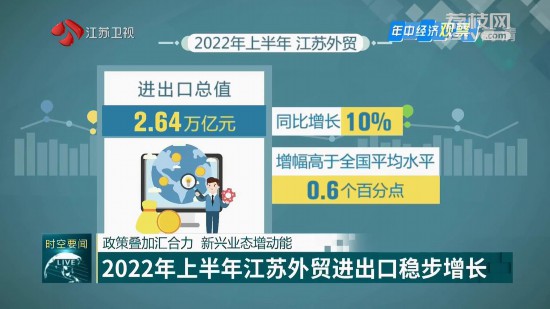 今年上半年,面對國際局勢緊張、新冠疫情反復(fù)等多重挑戰(zhàn),全省各地及時推出穩(wěn)外貿(mào)“組合拳”,大力發(fā)展新業(yè)態(tài)新模式,幫助企業(yè)保訂單、拓市場。依托強大韌性,江蘇外貿(mào)承壓前行,上交了一份穩(wěn)步增長的半年“答卷”。