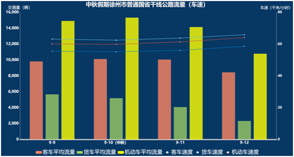 受疫情等因素的影響,預計“中秋”假期徐州市普通國省道日均車流量為12000輛,較去年同期相比下降5%左右。較今年“端午”假期(11222輛)流量上升7%。流量最高日為9月10日(中秋節(jié)當日),日均車流量將達到12300輛。預計假期期間客車流量將達到7000輛左右、貨車流量5000輛左右,車速較平日相比略有下降。