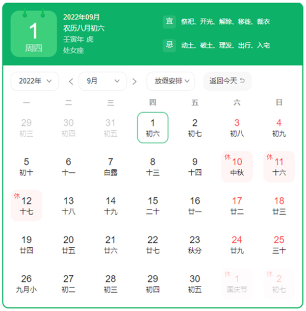 黃淮網(wǎng) “中秋”小長假即將到來,9月10日(周六)至9月12日(周一),共3天!其中,9月10日是中秋節(jié),為法定假日。