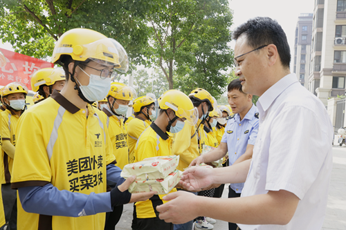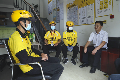 在慰問現(xiàn)場,市外賣配送行業(yè)黨委副書記周法庭與外賣騎手交流座談,了解外賣小哥接單、配送、工作時長、月收入、存在的困難、需要的幫助、并現(xiàn)場指導(dǎo)外賣小哥對配送箱進(jìn)行消毒,提醒外賣騎手節(jié)日期間要做好疫情防護(hù)、注意交通安全,守好食品安全“最后一關(guān)”。同時,號召黨員騎手充分發(fā)揮黨員的先鋒模范作用,帶動身邊同事積極向黨組織靠攏。