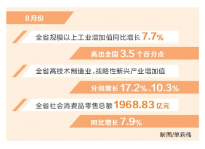省統(tǒng)計(jì)局9月19日發(fā)布數(shù)據(jù)顯示,8月份我省經(jīng)濟(jì)運(yùn)行總體保持恢復(fù)向好態(tài)勢(shì),部分主要經(jīng)濟(jì)指標(biāo)增速明顯加快且持續(xù)高于全國(guó)。
