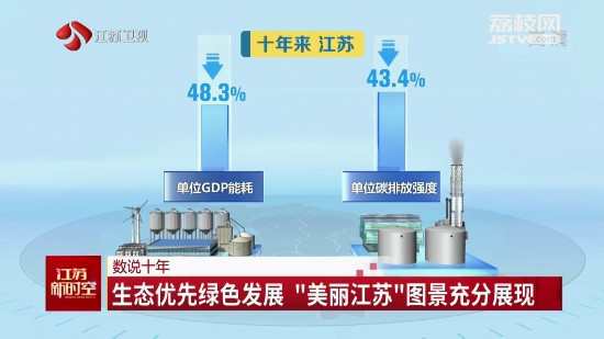 十年來,江蘇生態(tài)環(huán)境實(shí)現(xiàn)了從嚴(yán)重透支到明顯好轉(zhuǎn)的歷史性轉(zhuǎn)變。全省經(jīng)濟(jì)總量翻了一倍多,主要污染物排放總量卻持續(xù)下降,單位GDP的能耗、碳排放強(qiáng)度分別下降48.3%、43.4%。PM2.5平均濃度降至33微克/立方米,首次以省為單位達(dá)到國(guó)家空氣質(zhì)量二級(jí)標(biāo)準(zhǔn),實(shí)現(xiàn)了歷史性突破?諝鈨(yōu)良天數(shù)比率提高22.1個(gè)百分點(diǎn)、達(dá)到82.4%。國(guó)考斷面優(yōu)Ⅲ比例提升43.7個(gè)百分點(diǎn),達(dá)到87.1%,全面消除劣Ⅴ類水體。生態(tài)環(huán)境質(zhì)量創(chuàng)有監(jiān)測(cè)記錄以來的最好水平。