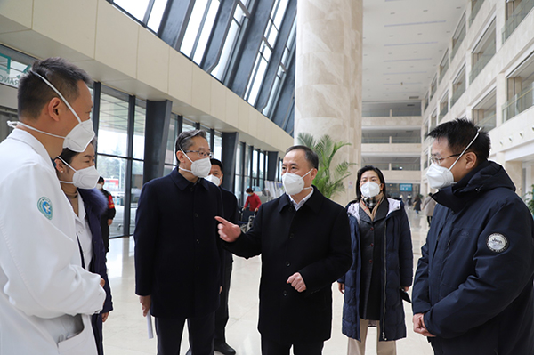 在徐醫(yī)附院東院,宋樂偉書記、王劍鋒市長詳細了解了醫(yī)院門診量、就診人員結(jié)構(gòu)、定點救治醫(yī)院床位數(shù)等情況,要求徐醫(yī)附院做好醫(yī)療資源儲備,健全完善分級分類診療服務(wù)體系,強化醫(yī)療資源統(tǒng)籌,全面提升醫(yī)療救治能力,全力守護人民群眾生命安全和身體健康。