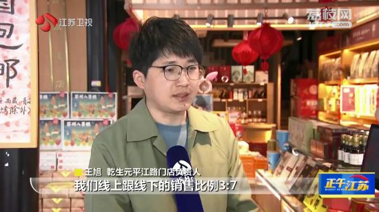 乾生元平江路門(mén)店負(fù)責(zé)人王旭說(shuō):“我們線上跟線下的銷(xiāo)售比例3:7,線下各門(mén)店的游客也逐漸增多。”