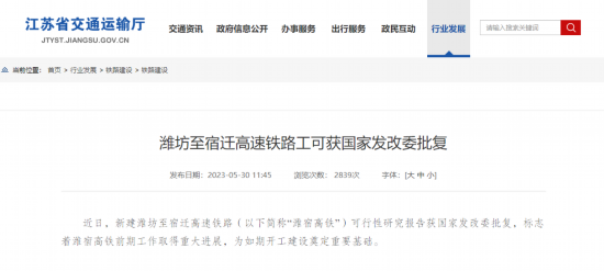 近日消息顯示濰坊至宿遷高速鐵路正式批復(fù)。5月30日,江蘇省交通運(yùn)輸廳官網(wǎng)發(fā)布,新建濰坊至宿遷高速鐵路可行性研究報(bào)告獲國(guó)家發(fā)改委批復(fù)。