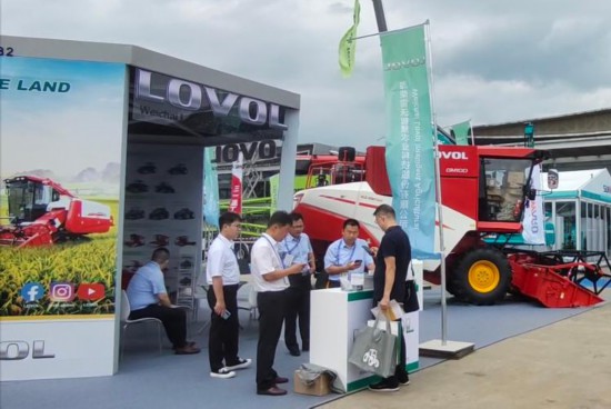 在室外展區(qū)中停著幾輛從山東運(yùn)來(lái)的“大塊頭”,它們正是山東濰柴雷沃智慧農(nóng)業(yè)科技股份有限公司生產(chǎn)的農(nóng)用機(jī)械車輛,其中包括公司明星產(chǎn)品“TD1304”拖拉機(jī)、“RG108 plus”水稻收割機(jī)、“GM100”小麥?zhǔn)崭顧C(jī)等。