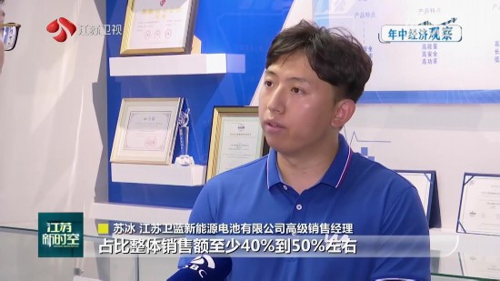 江蘇衛(wèi)藍(lán)新能源電池有限公司高級(jí)銷售經(jīng)理蘇冰說:“上半年固態(tài)電池海外業(yè)務(wù)占比整體銷售額至少40%到50%左右,已發(fā)的海外訂單就有1000多萬。”