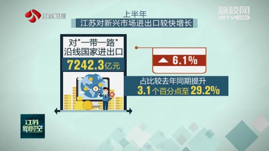 今年上半年,江蘇對(duì)“一帶一路”沿線國家進(jìn)出口7242.3億元,增長6.1%,占比較去年同期提升3.1個(gè)百分點(diǎn)至29.2%;對(duì)拉丁美洲、中東地區(qū)、非洲分別進(jìn)出口1829.3億元、1135.1億元、752.9億元,增長6.5%、13.8%、7.4%。