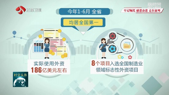 今年1-6月,全省實際使用外資186億美元左右、8個項目入選全國制造業(yè)領(lǐng)域標志性外資項目,均居全國第一。