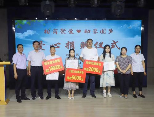 黃淮網(wǎng)(宋 梅)  8月10日下午,淮北市相山區(qū)工商聯(lián)與淮北市相山區(qū)慈善協(xié)會,在區(qū)黨群服務中心舉行了相商聚愛助學圓夢愛心捐贈儀式。三堤口街道商會企業(yè)家們踴躍捐款,積極資助貧困大學生,在孩子們求學之路上伸出援助之手。